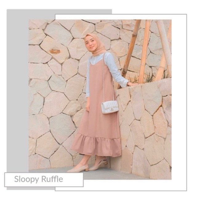adalah slip dress dipadukan dengan t-shirt polos lengan panjang. Kamu bisa